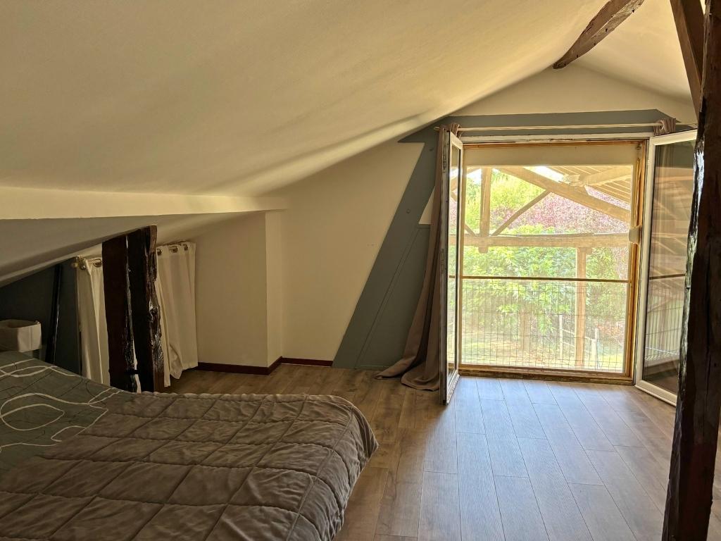 Cette bâtisse a su préserver tout son caractère grâce à ses éléments d'époque, tels que les poutres apparentes, tout en bénéficiant de rénovations partielles et de touches de modernité.