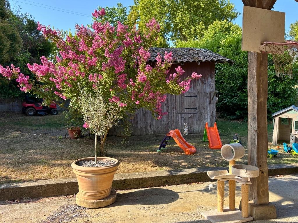 Le jardin, sans vis-à-vis, abrite un potager, de nombreux arbres et une piscine de 7 m x 3 m à réhabiliter dans son intégralité, offrant ainsi un véritable havre de paix.