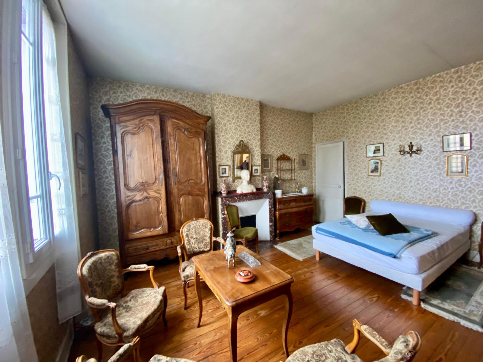 Le premier étage accueille trois chambres de belles dimensions, équipées de penderies, dont l'une bénéficie d'un accès à des toilettes privatives. Un bureau ainsi qu'une salle d'eau complètent cet étage. Les parquets anciens, parfaitement entretenus, témoignent du charme et de l'authenticité de la maison.